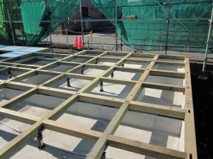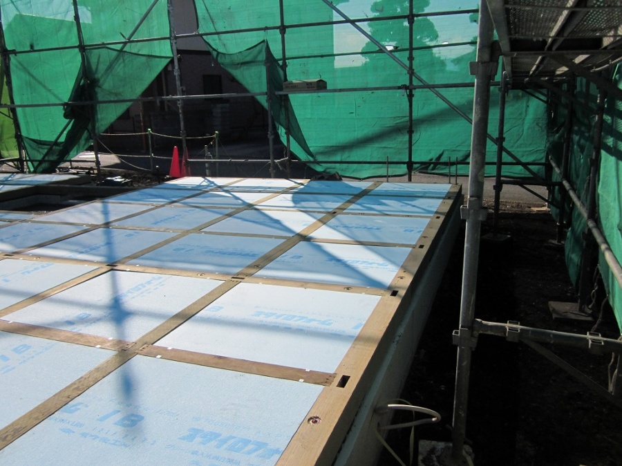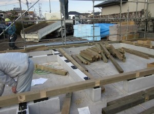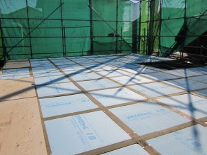 昨日は土台敷きで今日は床の断熱材と床合板敷くのをお手伝いしました。
